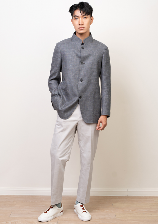 Lucky Wool Silk Mandarin Collar Jacket (Slim Fit) - Wolf Grey