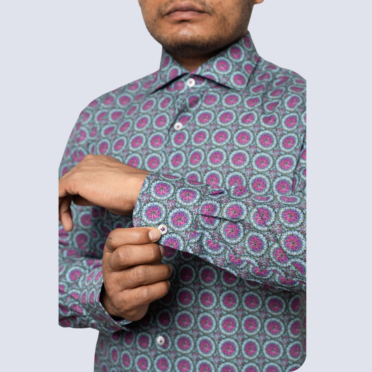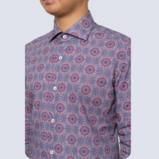 Electric Blue Long Sleeve Shirt with dual contrast fabric