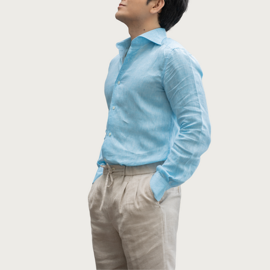 Crystal Blue Linen Casual Short Sleeve Shirt